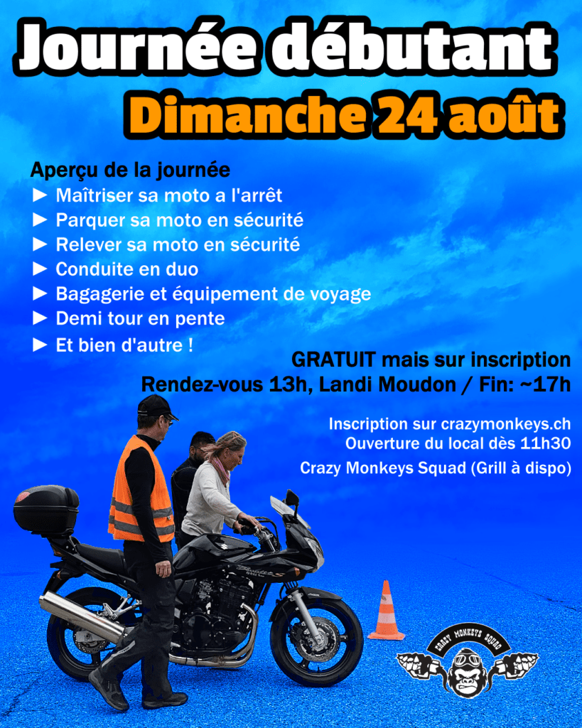 Ouvertes à tous et toutes, notre journée débutant et débutante s’adresse aux L, mais aussi au motard et motardes ayant eu récemment leur permis. Le but étant de compléter les connaissances avec des astuces et des conseils qui ne sont pas forcément apprises pendant lors du permis.